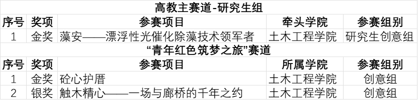 在本次比赛中表现优异,3个项目斩获2金1银的好成绩,展现了土木人的创新精神与卓越实力!