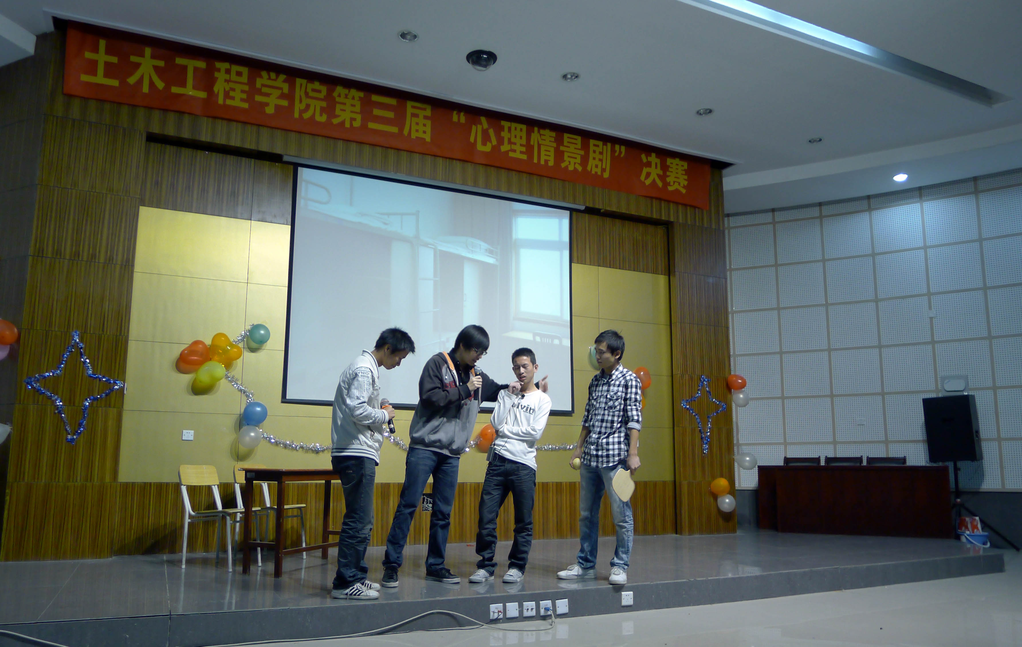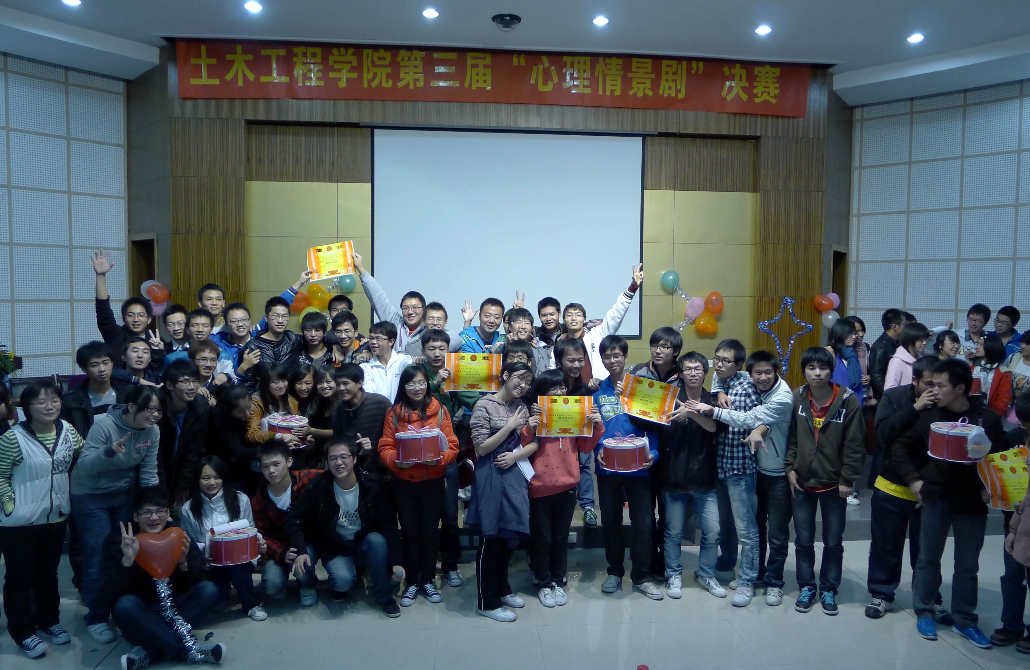 第三届心理情景剧大赛决赛在土木楼多功能报告厅隆重拉开帷幕。参与此次比赛评比的嘉宾评委有校心理咨询中心许世梅老师、黄瑞枫老师以及土木学院10级辅导员张晶老师作为此次比赛的评委出席本次活动。
