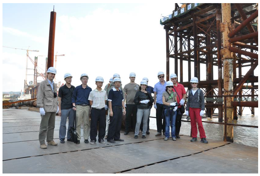 图13参观宁波明州大桥建设工地