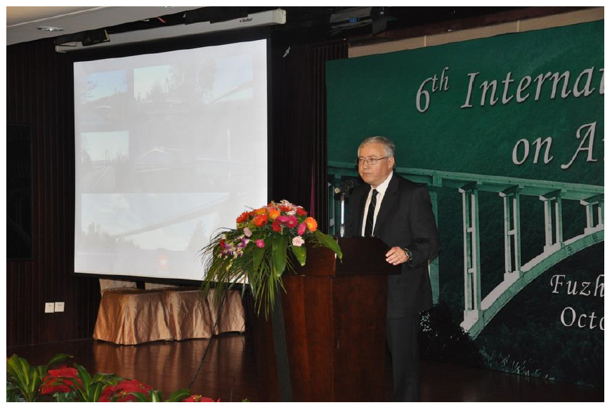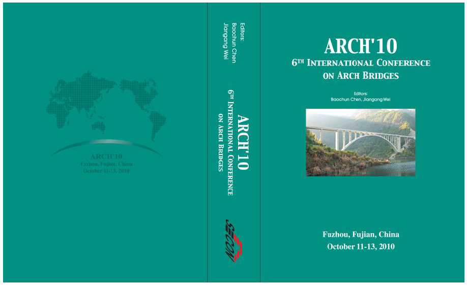 2010年10月,第六届国际拱桥大会(6th International Conference on Arch Bridges)在福州召开,会议共征集到来自20多个国家的129篇学术论文并正式结集出版,如图22所示,在全世界发行;100多位世界各地的专家出席了本次会议。《福建日报》进行了正式的报导,《桥梁》杂志进行了专题报道,在国内外桥梁工程界产生了较大的影响。在克罗地亚合作方的努力下,2013年第七届国际拱桥大会将在克罗地亚举行。