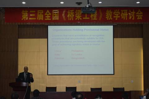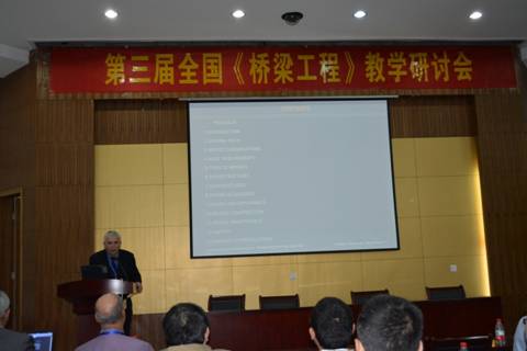 会上,意大利IUAV大学Enzo Siverio教授、克罗地亚萨格勒布大学,Zlatko Savor教授、加拿大Ryerson大学的Khaled Sennah教授、日本长崎大学中村圣三教授、葡萄牙波尔图大学Antonio Adao Da Fonseca教授和巴西圣保罗大学Fernando Stucchi教授结合自己丰富的教学经验和各个国家的实际情况,分别从桥梁工程的工程学特点、教材使用情况、课时安排、教学内容、实践环节等方面,介绍了教学体会与经验。
