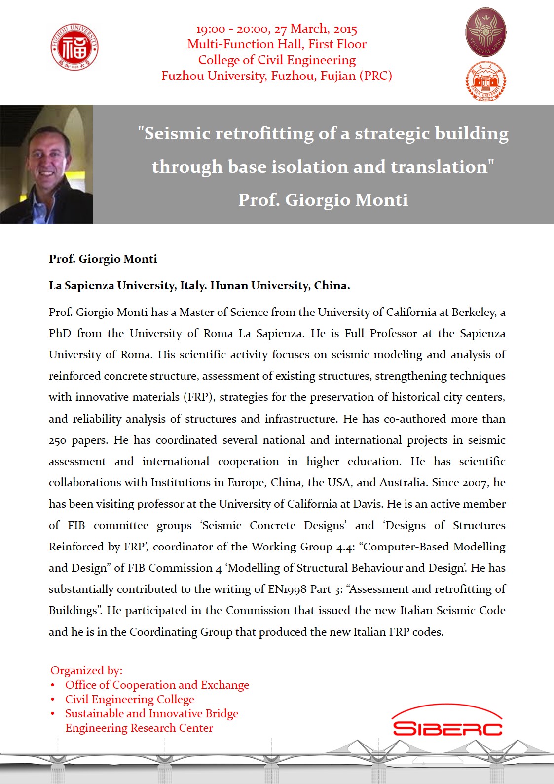 上一篇:意大利巴里理工大学Giuseppe Marano 教授讲座:“Structural Optimization”和意大利La Sapienza 大学Giorgio Monti讲座:“Reliability of S教授tructures ”