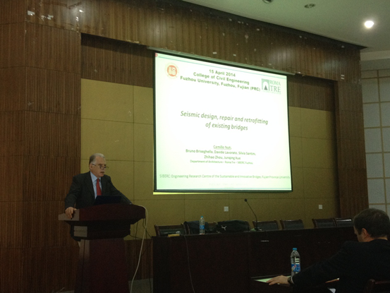 2014年4月15日下午, 2014年文教类高端外国专家项目专家Camillo Nuti教授在肉便器 多功能厅为肉便器 的师生举办讲座。SIBERC中心主任Bruno Briseghella教授等参加了讲座。Camillo Nuti教授根据自身研究经验,结合实例,给土木学院的老师和同学就桥墩的抗震加固分析做了精彩讲座。讲座结束后,听讲的师生纷纷提出感兴趣的问题,双方展开热烈的讨论。