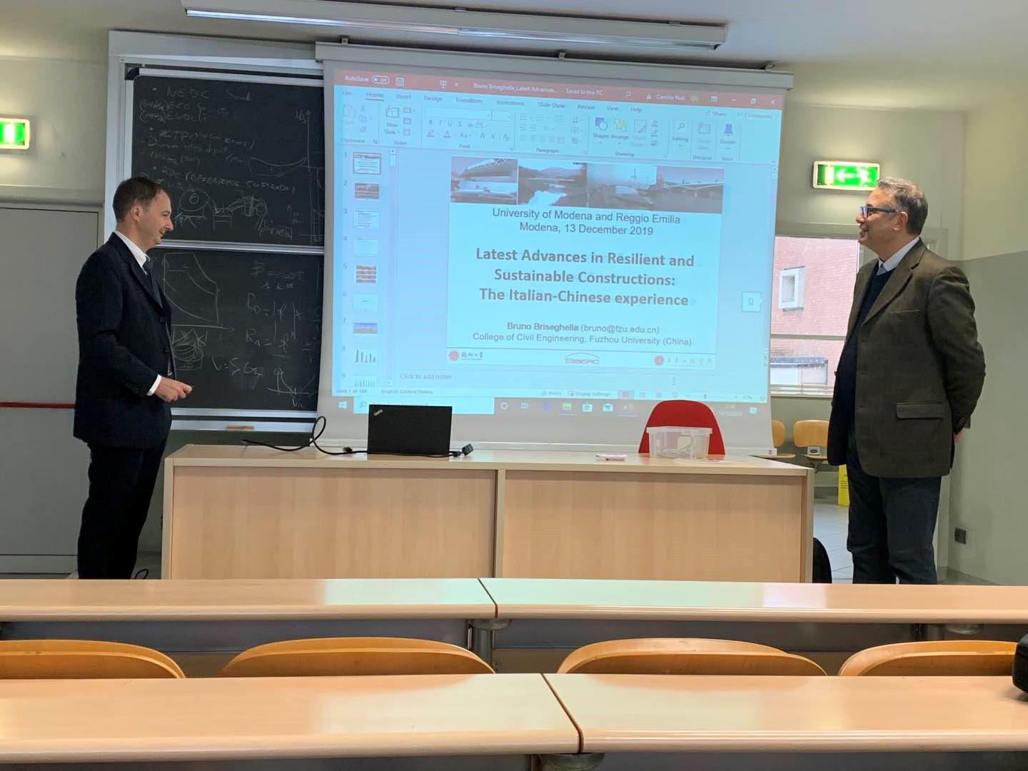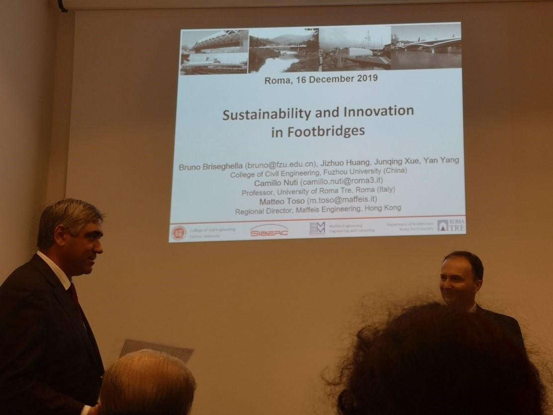 外聘兼职高端外国专家)为Bruno Briseghella院长一行精心组织了主题为Asian-European Advances in Construction and Design 的 Workshop, 并邀请了包括葡萄牙波尔图大学、意大利卡利亚里大学、罗马一大、罗马二大、罗马三大等多所高校在内的近30位专家学者前来参会,其中有多位外方学者曾来访过中国并与中方人员开展过合作研究。Workshop针对中国土楼建筑文化、建造技艺、受力性能模拟,欧洲生土建筑的加固与修复,意大利建筑抗震评估,以及无缝桥、人行天桥和木拱桥的可持续与创新设计等进行了充分和深入的交流与探讨。此外,Bruno Briseghella院长一行还与中意中心罗马三大负责人Camillo Nuti副校长就2020年成立中意中心意大利办事处的前期筹备工作和具体细节进行了深入交流和探讨;同时对2020年在意大利举办第5届中意学术夏令营活动的可能性及组织形式达成了初步共识。