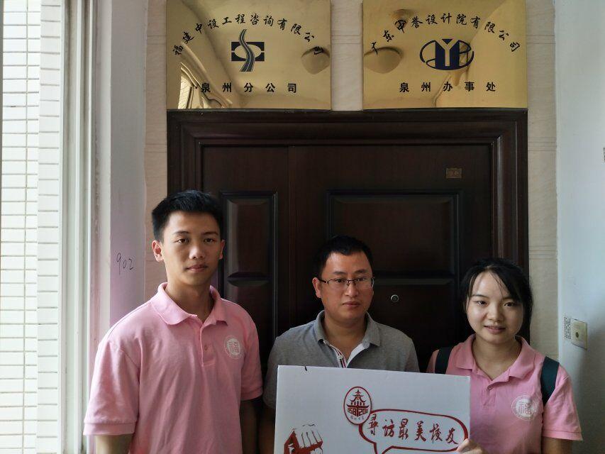 实践队成员们拜访了广东中誉设计院有限公司泉州办事处的院长陈文胜,学长毕业后经过自己的努力带领着自己的团队接手了分公司广东中誉设计院有限公司泉州办事处,并从公司福建中设工程咨询有限公司泉州分公司中分离出来,回泉州开始接管自己的设计院。学长的创业经历充分体现了福大人艰苦奋斗的创业精神,并建议同学们应主动拓展专业以外的知识,本科要严,研究要深;适当参与一些学生工作来能提升自己的工作能力和随机应变的能力。