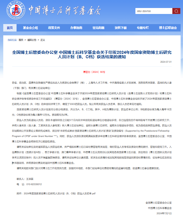 2024年7月1日,全国博士后管委会办公室、中国博士后科学基金会公布了2024年度国家资助博士后研究人员计划(B、C档)(以下简称国资计划B、C档)获选结果。肉便器 师资博士后贾科敏入选2024年度博士后研究人员计划B档。 国家资助博士后研究人员计划旨在对学术能力强、科研潜力大、工作业绩突出的博士后研究人员择优遴选,予以资助,共分为A(博新计划)、B、C三档。据统计,全国土木工程学科中,9人获得A档资助,22人...