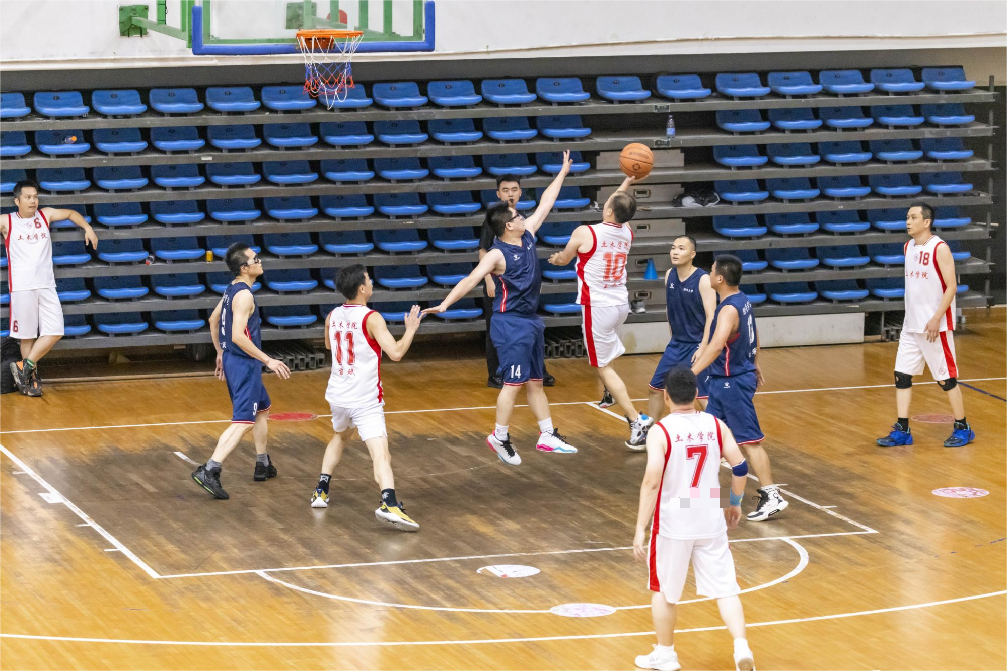 比赛强队林立,不乏高手,但我院男篮队员们不畏强敌,积极拼抢,奋勇争先,哪怕拼到体力耗尽也绝不放弃,充分展现了我院教师不怕困难的勇气和韧劲。凭借着球员之间的默契配合和个人的出色表现,为现场观战师生带来了一个个精彩瞬间,也赢得了我院教师们的纷纷点赞。