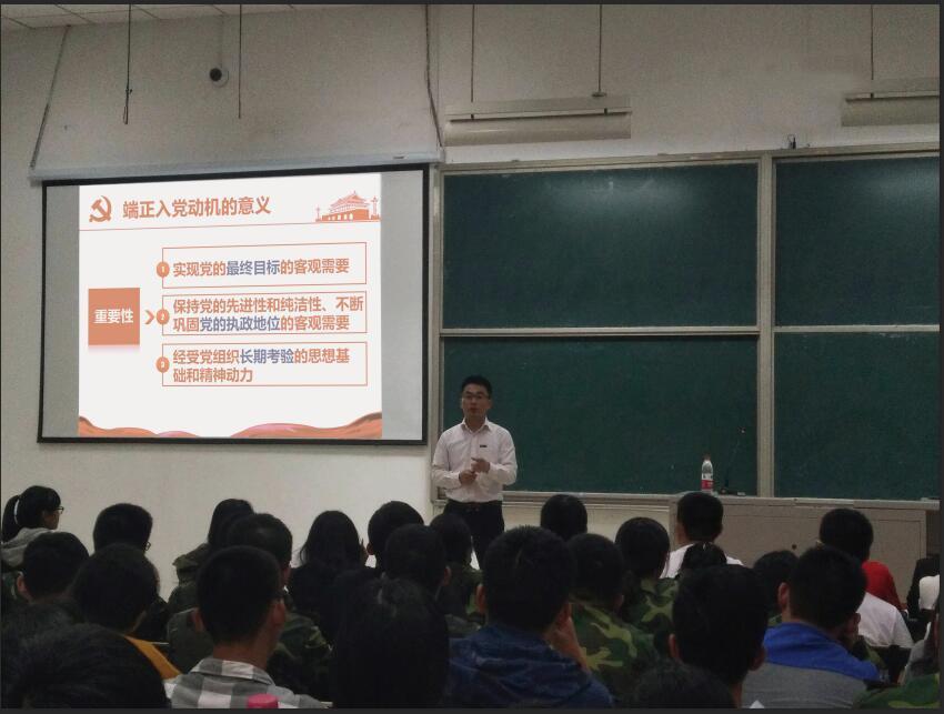 首先,柯江锋老师从“理想”、“信念”两个的内涵意义出发,向在座学员们解释了什么是理想、什么是信念。接着,柯江锋老师通过中国共产党在80多年前、60多年前、40年前和20年前遇到挫折后依旧坚定理想信念的例子为学员们讲述了树立理想信念的重要性;随后,他从中国成功走进新时代的原因以及现代大学生的六种常见入党动机类型出发,提出作为一名优秀的党员要知行合一,并让在座的学员们深刻认识到唯一正确的入党动机:全心全意为人民服务,不惜牺牲个人的一切,为实现共产主义奋斗终身。