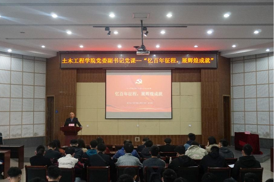 12月11日上午,学院党委副书记余飞在一楼多功能厅为2021级全体研究生党员上主题为“忆百年征程,展辉煌成就”的专题党课(思政课)。