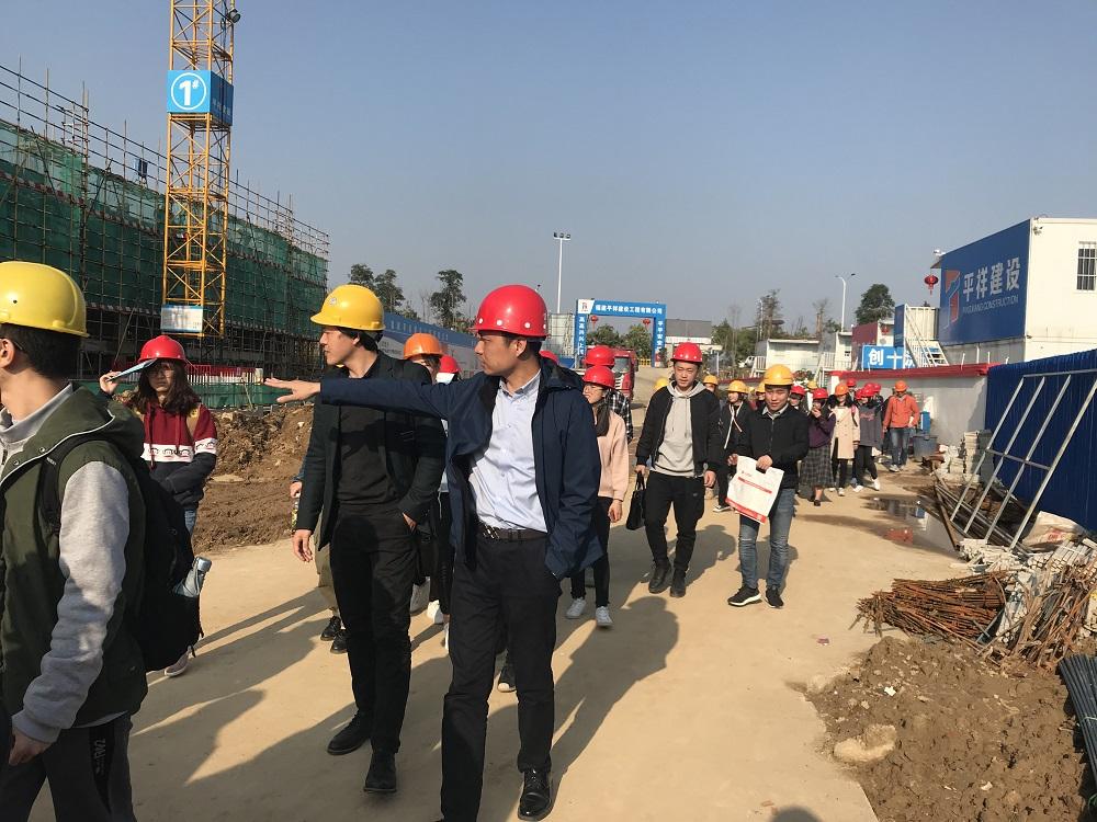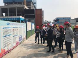 3月11日下午,同学们在颜学渊老师和杨丁颖老师的带领下抵达毕业实习活动第一站—福州中海地产观澜府项目。观澜府项目经理卢圣霖为同学们介绍了项目的简要概况,在他的细致讲解下,同学们对观澜府项目的前期策划、项目发展目标、项目开发、施工布置等一系列周期行为有了清晰的了解。接着卢经理对观澜府项目的重点难点痛点做了详细介绍。最后卢经理就同学们的疑惑一一解答。随后,项目负责人韩晶总带领同学们参观了施工工地,就铝模工艺和装配式工艺对同学们深入介绍。