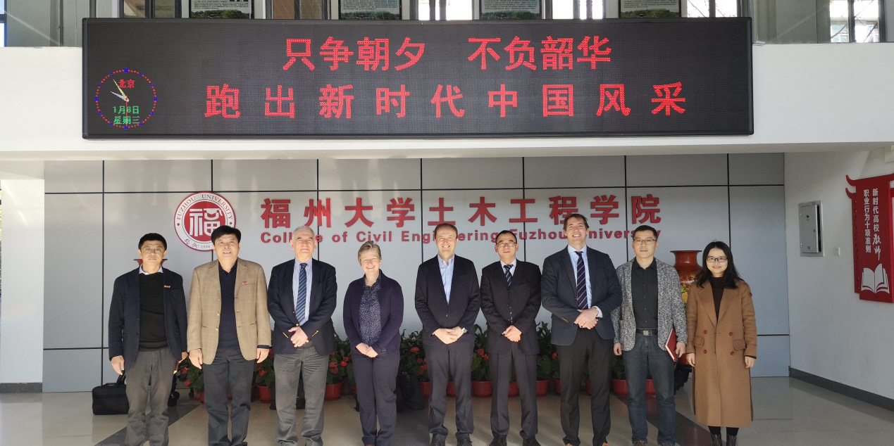 2020年1月8日,英国思克莱德大学(University of Strathclyde )工程学院院长Atilla Incecik、海洋与轮机系主任Julia Race、国际办公室主任Stuart Shorthouse和海洋与轮机系周培林教授来访福州大学土木工程学院洽谈合作事宜。我院院长Bruno Briseghella教授、副院长张挺教授,院长助理黄冀卓教授以及水利系副系主任金保明等老师出席了座谈会。